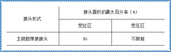 表1 接頭長度區(qū)段內(nèi)的受力鋼筋接頭面積的最大百分率