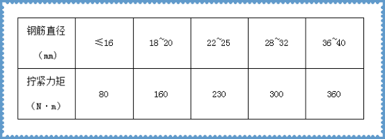 鋼筋連接完畢后,擰緊力矩應(yīng)符合表3的要求。