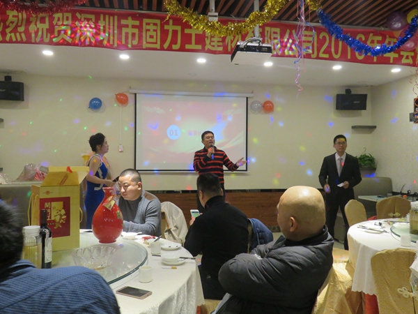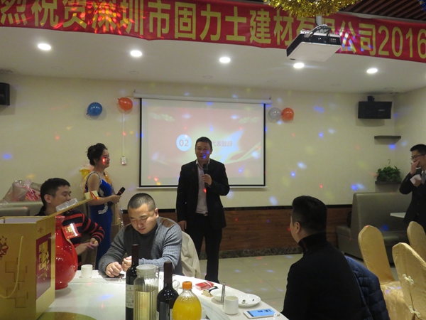 2017年1月16日晚,深圳市固力士建材有限公司2016年會勝利召開,固力士全體員工以及部分新老客戶親朋好友參與本次年會。本次年會主要內(nèi)容為年終總結(jié)、文藝節(jié)目、互動游戲、表彰優(yōu)秀和年終晚宴。