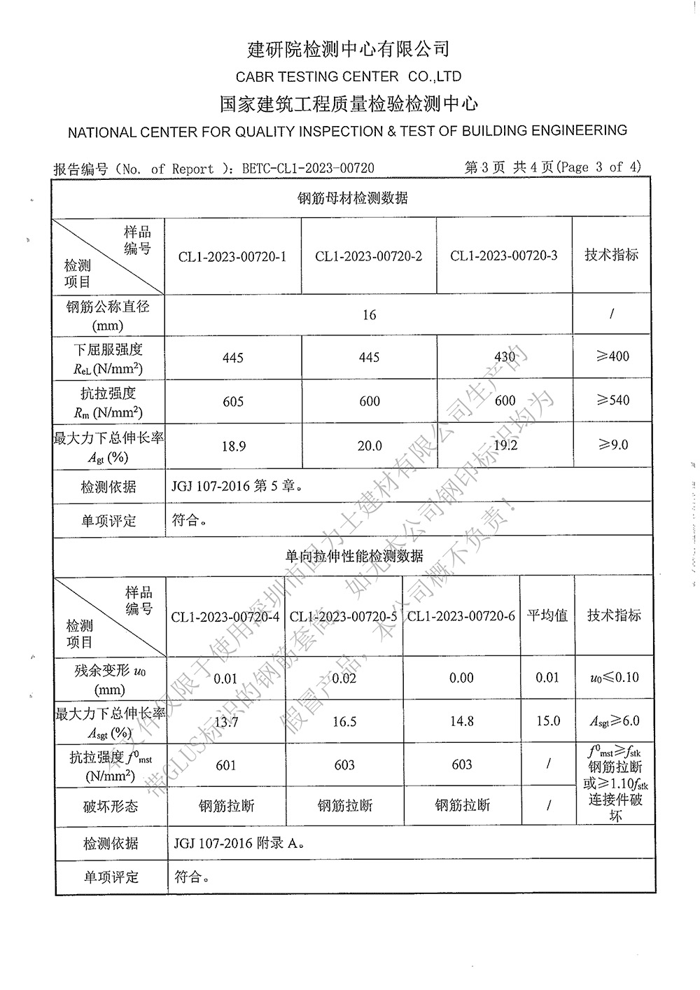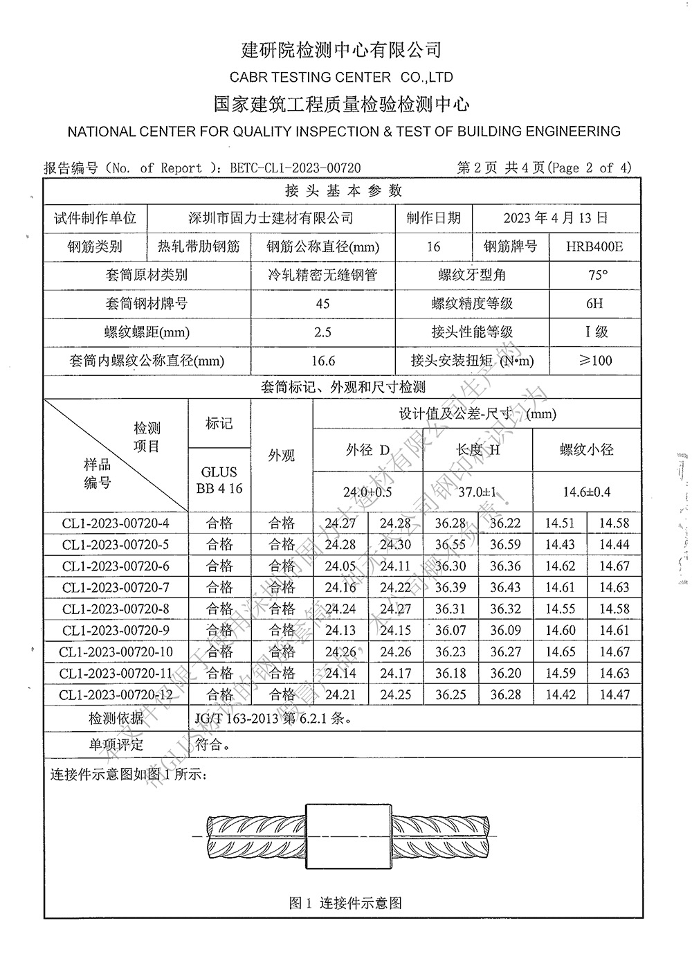 固力士鋼筋機(jī)械連接用套筒2023年型式檢驗(yàn)報(bào)告